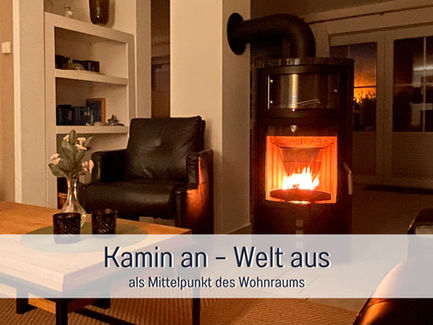 An kühleren Tagen sorgt der drehbare Kamin für wohlige Wärme und ein angenehmes Lichtspiel – perfekt, um bei einem Glas Wein den Tag entspannt ausklingen zu lassen.